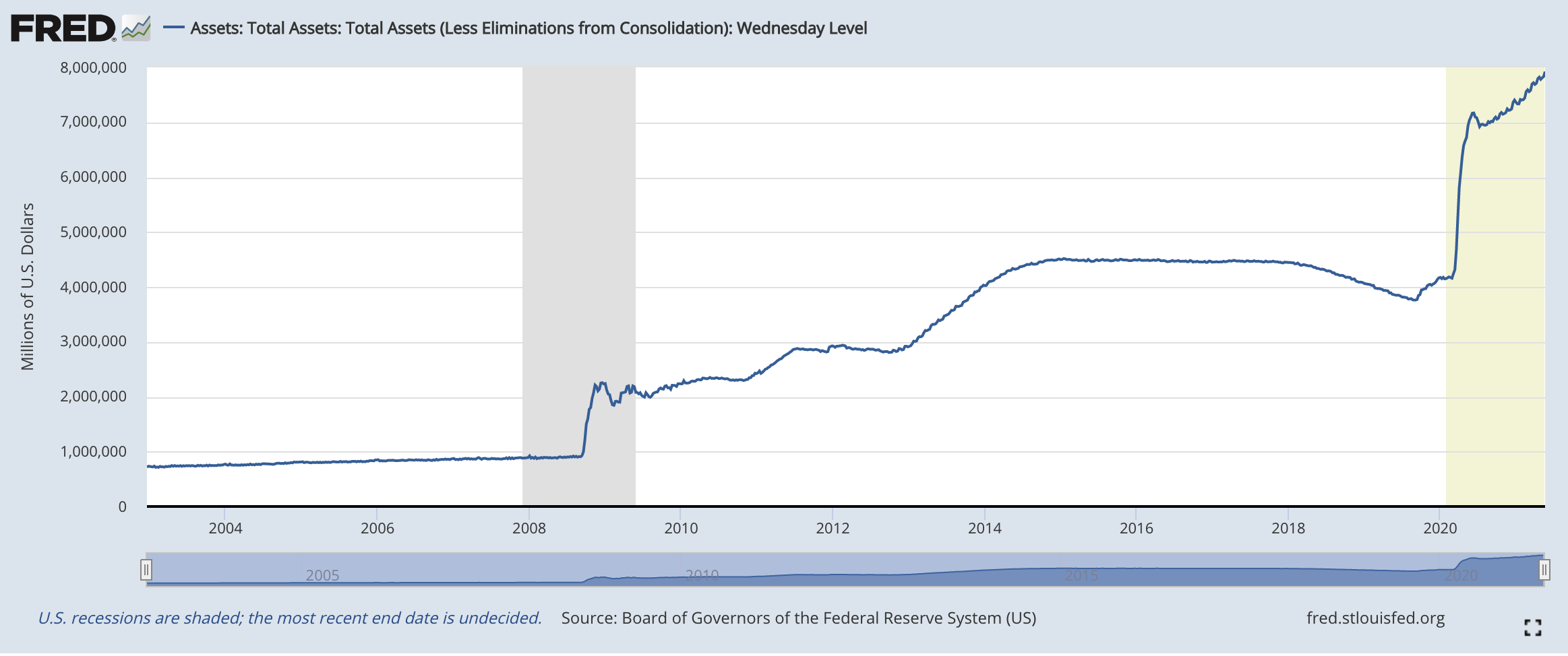 As you can see, the size of the Fed balance sheet has roughly doubled since the beginning of the pandemic.