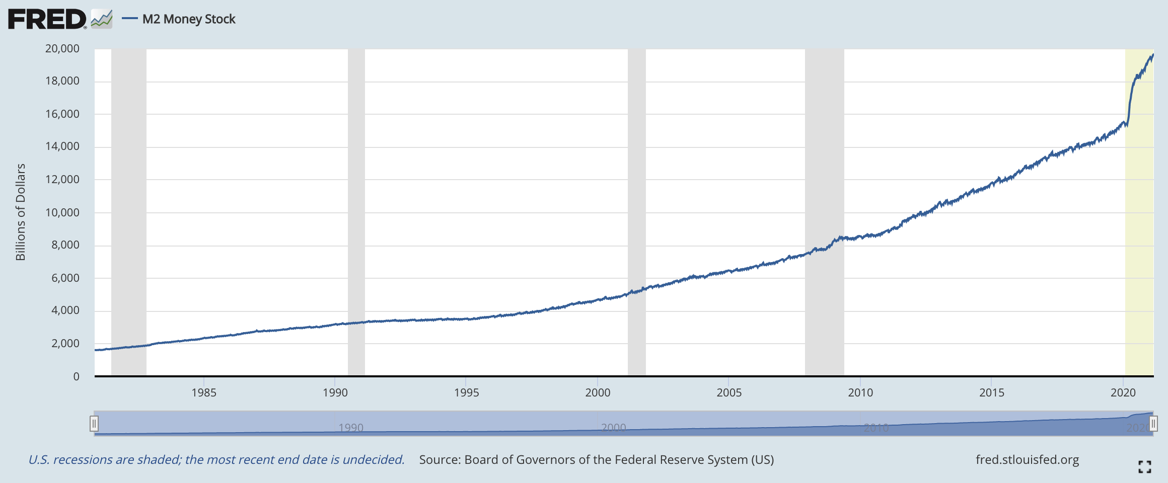 Just look at what this has done to our money supply.  The following chart which comes directly from the Federal Reserve shows the stunning growth of M2 since the beginning of the pandemic…
