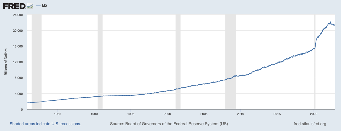 But this shouldn’t have been a surprise to any of us. Starting in 2020, our leaders absolutely flooded the system with new cash and the size of the money supply absolutely exploded.